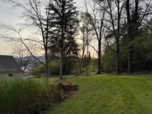 Spacious home located on .84 acres with a circular blacktop driveway. This property overlooks the Village with a wooded lot behind the home, an above-ground swimming pool and storage building. Enter this home from the front deck into the foyer with a closet. A large picture window brightens the living room with a gas fireplace and hardwood floors. The formal dining area has French doors that open onto the back deck with views of the woods and coy pond with fountains and waterfalls. The eat-in kitchen includes a refrigerator, garbage disposal, dishwasher, electric cooktop and built-in oven and leads to the mudroom and side door. On the main floor you will also find the spacious primary bedroom, a second bedroom, a full bath with heated ceramic tile flooring, a walk-in ceramic tile shower and two hall closets. Upstairs you will find 2 additional bedrooms, an office and a full bath. The full basement includes a family room with a wet bar, workshop, storage room and a door that leads to the 1 car garage.